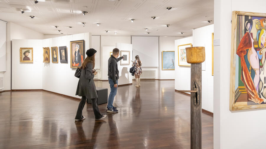 Die Gießener Kunstszene wird anhand von ausgewählten Werken repräsentiert, wobei die Kunstszene von vielen Künstler*innen geprägt wurde, von denen einige, wie z. B. Hein Heckroth, auch überregionale Bedeutung erlangten. Fortgesetzt wird der Rundgang mit der Porträtmalerei des 19. und 20. Jahrhunderts. Einige der dargestellten Personen haben einen Bezug zu Gießen, andere wiederum wurden von Gießener Künstler*innen geschaffen.