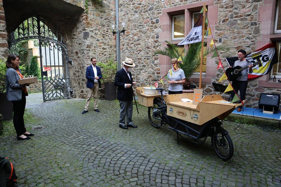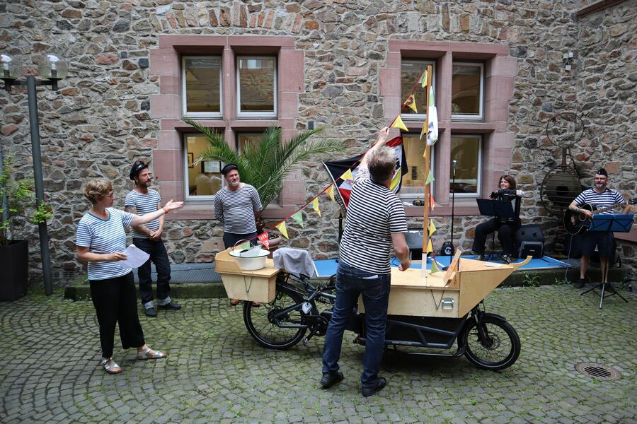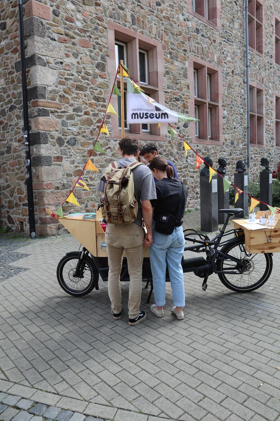 Das Oberhessische Museum hat in der Nachfolge des Stadt[Labor]Gießen ein museumspädagogisches Vermittlungskonzept entwickelt, das im Stadtraum Bürger*innen auf das Museum aufmerksam machen, über die neuen Entwicklungen des Museums informieren und Inhalte des Museums vermitteln soll. Dafür wurde das Lastenrad zum Boot umgebaut, das ab sofort als Pop-Up-Museum an unterschiedlichen Orten in Gießen erscheinen wird.