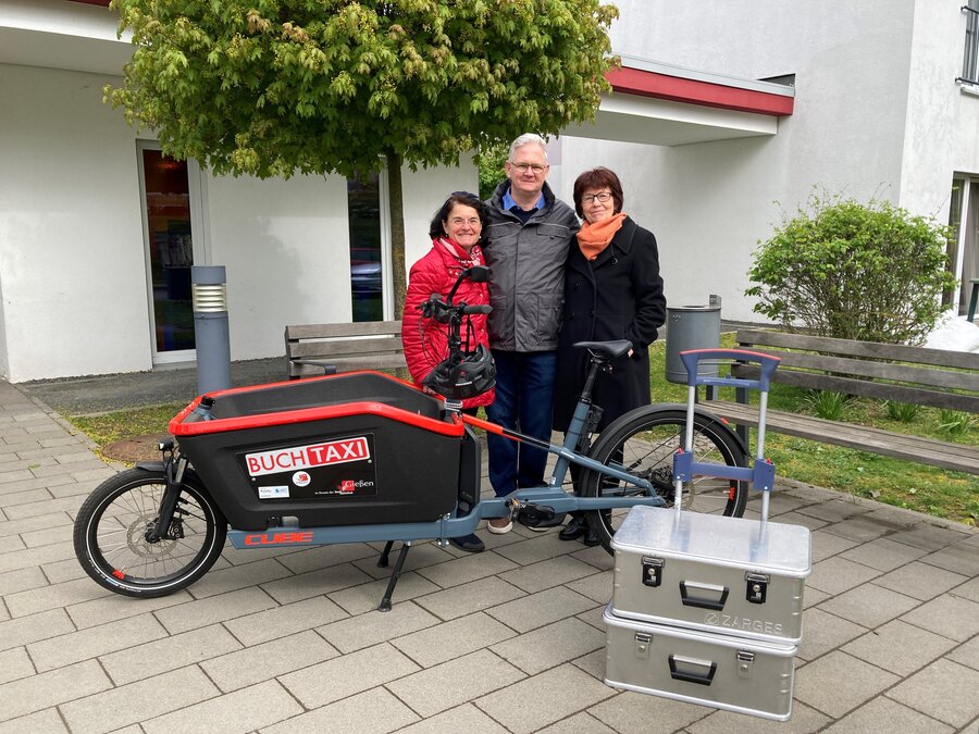 Einmal im Monat bringen wir mit dem eigens für das Projekt angeschafften Lasten-E-Bike - unserem BuchTAXI - neue Romane, Kurzgeschichten, Bastelbücher und Bildbände in die Einrichtungen.