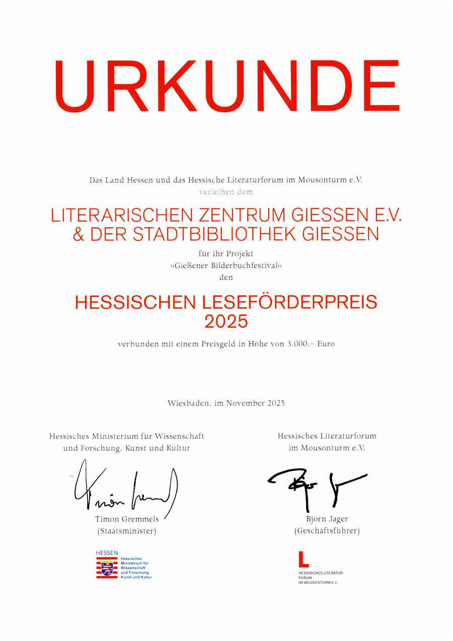 Das Literarische Zentrum Gießen e.V. und die Stadtbibliothek Gießen organisieren mit dem „Gießener Bilderbuchfestival" eine in der Stadt verankerte Kulturveranstaltung.