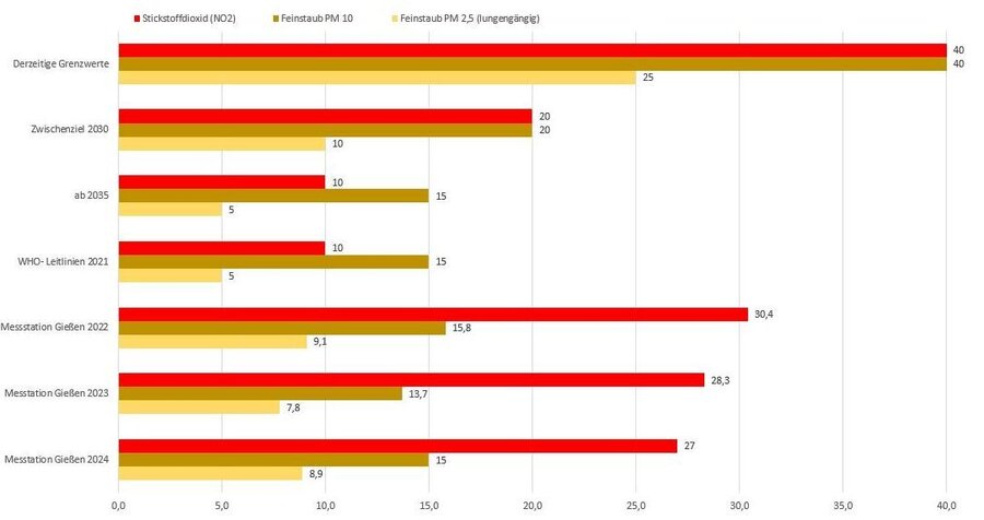 Luftschadstoffwerte Gießen 2024 und Ziele der Luftqualität