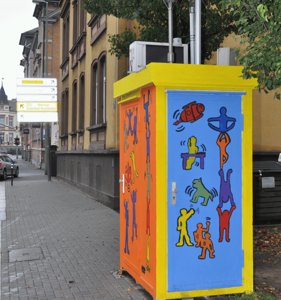 Junge Künstler haben die Luftmessstation verschönert. Die Malaktionen dienten gleichzeitig der Umweltbildung: