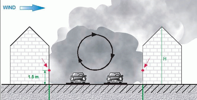 In der Westanlage rückt die Bebauung bis dicht an die Straße und der Abstand zwischen den Häusern ist gering. In diesen sogenannten Staßenschluchten erhöht sich aufgrund fehlender Belüftung die Luftschadstoffbelastung.