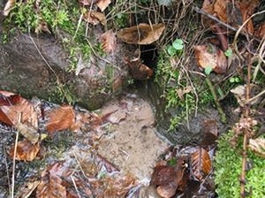 Eine Besonderheit sind die zahlreichen älteren Quellfassungen im Schiffenberger Wald. Die unmittelbaren Quellbereiche sind hier mit Steinen abgemauert oder wie im Fall des Hirtenbrunnens (Foto) mit einer behauenen Steinplatte gefasst. Die Quellbäche fließen häufig in Weiher, werden aufgestaut oder in Kanäle eingeleitet.