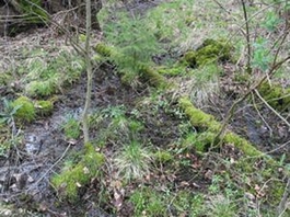 Sickerquellen sind die am häufigsten vertretenen Quelltypen in Gießen. Sie entstehen meist in Geländesenken, in denen sich das Grundwasser der umliegenden Hänge sammelt. In zahlreichen kleinen Rinnsalen tritt Wasser aus der Erde aus und bildet Feuchtstellen, wie zum Beispiel im Gießener Staatsforst (Foto). Dem Gefälle folgend bildet sich der Quellbach durch das Zusammenfließen mehrerer Wasseraustritte.