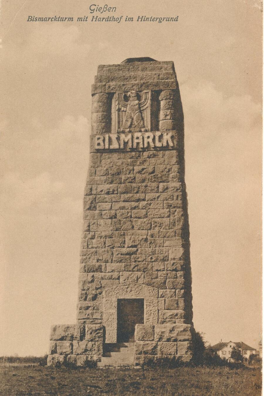 Der Bismarckturm wurde 1904 durch Spenden aus der Studentenschaft und des Lehrkörpers der Universität errichtet. Seit dieser Zeit diente der Turm nicht nur Universitätsangehörigen, sondern allen Bevölkerungsschichten als ein beliebtes Ausflugsziel mit einzigartigem Panoramablick auf Gießen und die Umgebung. Der monumentale, aus mächtigen Lungensteinquadern gemauerte Turm hat einen quadratischen Grundriss mit einem würfelförmigen Aufsatz mit einer Reliefinschrift „BISMARCK“ und darüber ein betont flachgehaltenes Relief des Reichsadlers. Er ist ein Kulturdenkmal aus künstlerischen, kulturgeschichtlichen und universitätsgeschichtlichen Gründen.