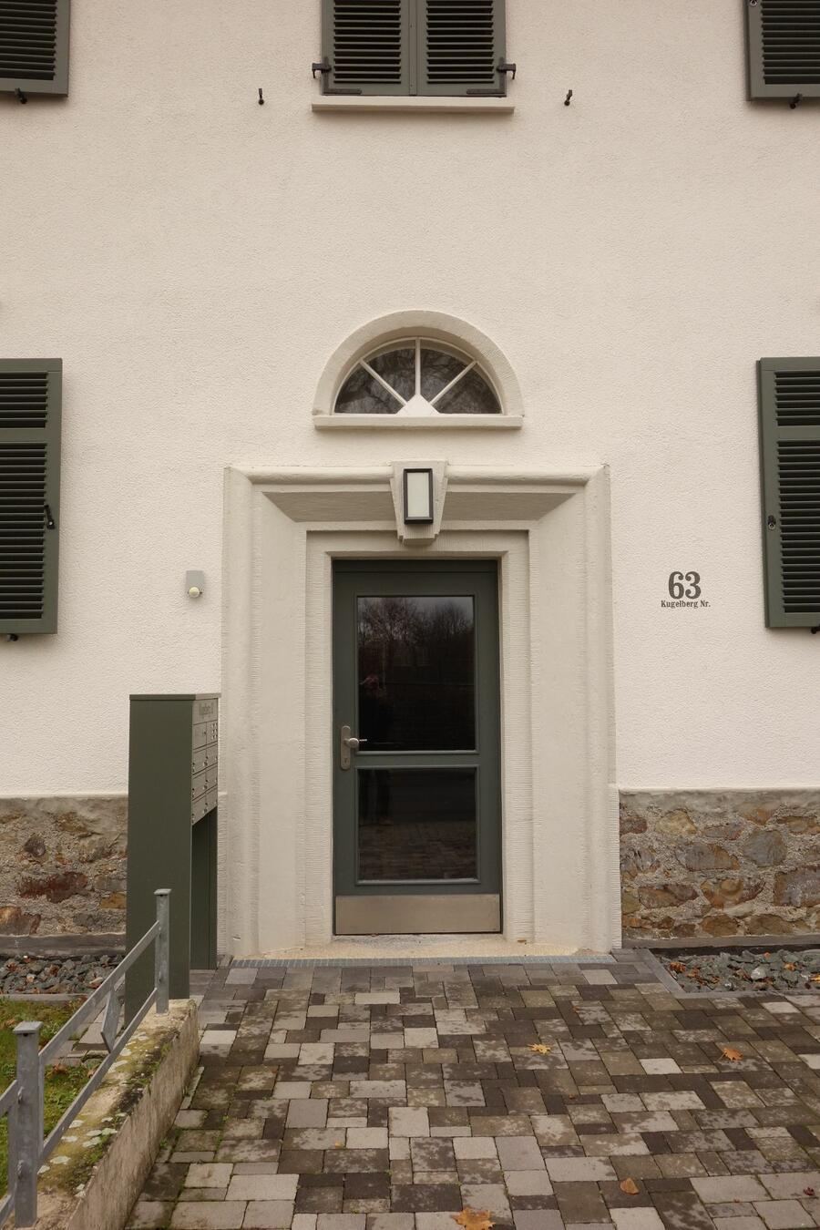 In der Kategorie Mehrfamilienhaus geht der Preis an die Baugenossenschaft 1894 Gießen eG für die Sanierung der Wohnhäuser Kugelberg 57, 59/61 und 63. Sie war die erste Gießener gemeinnützige Baugenossenschaft, die auf dem 1919 von der Stadt Gießen zur Linderung der Wohnungsnot nach dem 1. Weltkrieg ausgewiesenen Areal südöstlich der Bergkaserne Wohnungen erbauen ließ. Zunächst entstanden 1922/23 auf der Nordseite der neuen Straße „Am Kugelberg“ 20 zweigeschossige Einfamilien-Reihenhäuser mit Nutzgärten. Es folgten 1926/27 zur Senkung der Baukosten zwölf zweigeschossige Mehrfamilienhäuser mit ausgebautem Dachgeschoss. Zu diesen gehören die nun vorbildlich sanierten Wohnhäuser 57, das Doppelhaus 59/63 und Nr. 63. Sie unterscheiden sich durch die Anordnung und Ausformung von Giebeln und Gauben, der Position von Balkonen und durch die dezente neoklassizistische Bauzier.