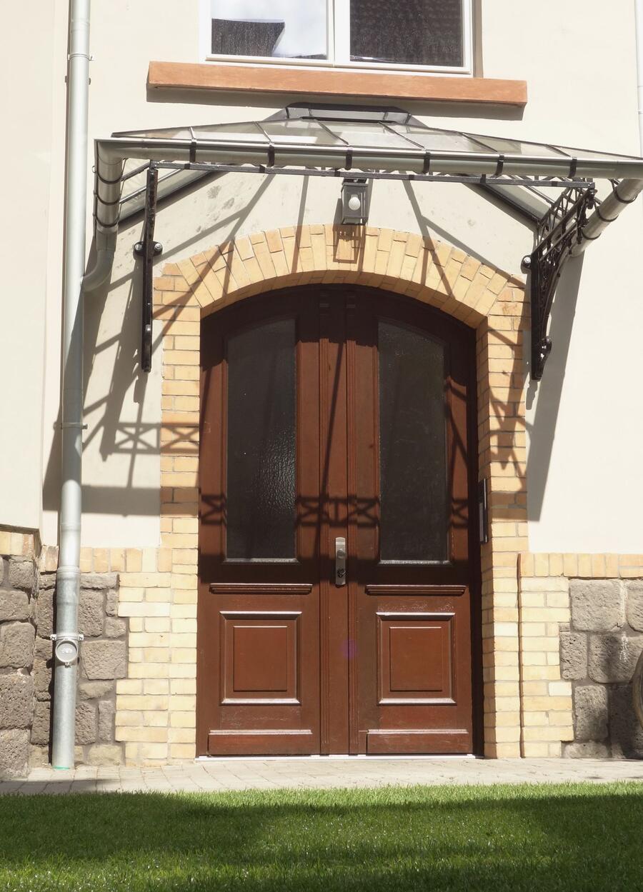 Hervorzuheben ist auch der Nachbau der Haupteingangstür nach bauzeitlicher Vorlage und aller weiterer Nebeneingangstüren. Von der ursprünglichen dekorativen Innenausstattung ist nach über 80 Jahre fortdauerndem Klinikbetrieb heute wenig erhalten. Beeindruckend ist die Eingangshalle im Erdgeschoss mit dem repräsentativen offenen Treppenhaus und dem Bodenbelag und den Wandverkleidungen aus Lahnmarmor, die aus einem Restblock des heute nicht mehr abgebauten Steinmaterials vorbildlich ergänzt wurden. Durch die Entfernung der unpassenden Beläge auf den Treppenstufen und dem Einbau von dezenten Sicherheitsverglasungen anstatt der früheren Einhausungen der Treppenläufe kann die fein gestaltete steinsichtige Treppenanlage nun wieder zur Geltung kommen.