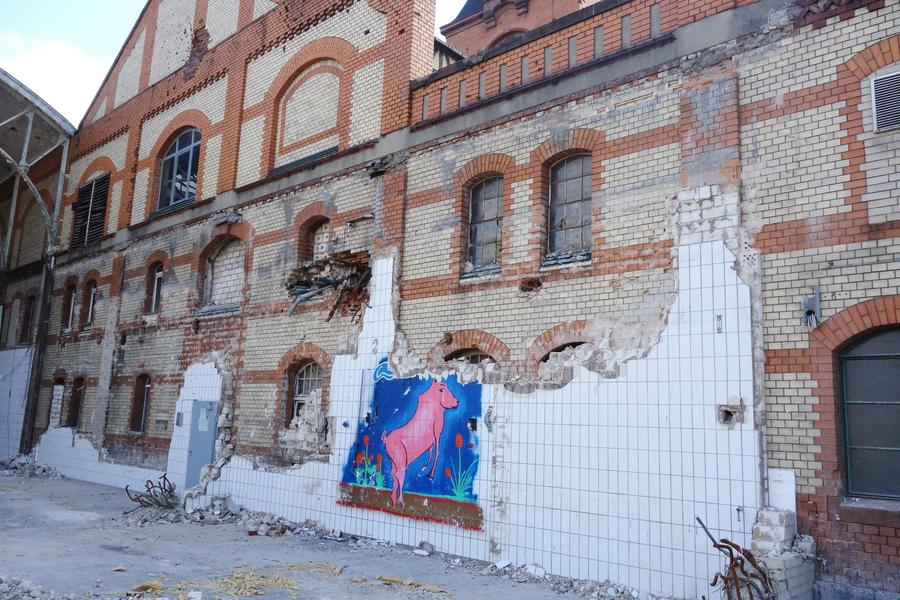 Die historische Stahl-Tragkonstruktion der Schlachthallen ist z.B. in Coworking-Spaces weiterhin ablesbar und auch die neue Gaststätte im ehemaligen Maschinenhaus behält mit Teilen der Originalausstattung und den historischen Metallfenstern ihren ursprünglichen Raumcharakter. Mit der aufwendigen Instandsetzung des prägnanten, heute allerdings funktionslosen Schornsteins besteht ein wichtiges Erinnerungszeichen der Industriekultur fort.
