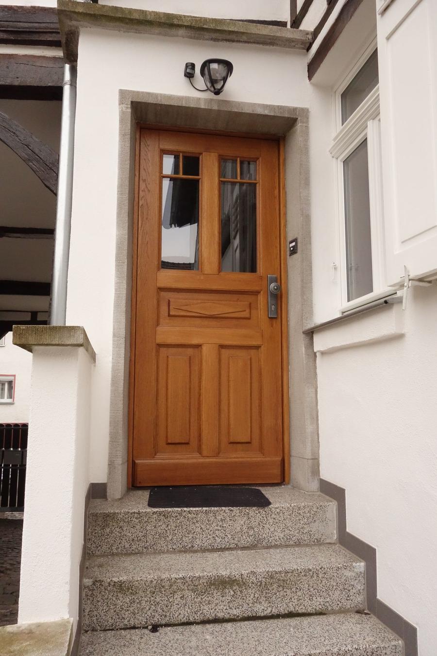 Unter größtmöglicher Erhaltung der Originalsubstanz wurde das ursprünglich auf Sicht angelegte Fachwerk fachgerecht freigelegt und nach restauratorischer Untersuchung farblich neu gefasst. Die nachträglich eingebauten, viel zu großen ungegliederten Fenster wurden wieder auf das ursprüngliche Maß reduziert und als Sprossenfenster ausgeführt, die Haustür denkmalgerecht aus Holz neu gefertigt, so dass sich heute ein harmonisches Gesamtbild ergibt. Auch die Sanierung der Innenräume erforderte viel Maßarbeit und individuelle Lösungen - im Ergebnis hat das Haus wie die Eigentümerin den Jurymitgliedern bestätigte, eine hervorragende Wohnqualität, gerade durch die denkmalgerechte Verwendung natürlicher, traditioneller Baustoffe. Die Preisträgerin hat einen wichtigen Beitrag zur Erhaltung des historischen Ortskerns von Wieseck geleistet und es ist zu hoffen, dass von dieser Sanierung eine große Vorbildwirkung ausgeht z.B. für weitere Fachwerksanierungen in Wieseck.