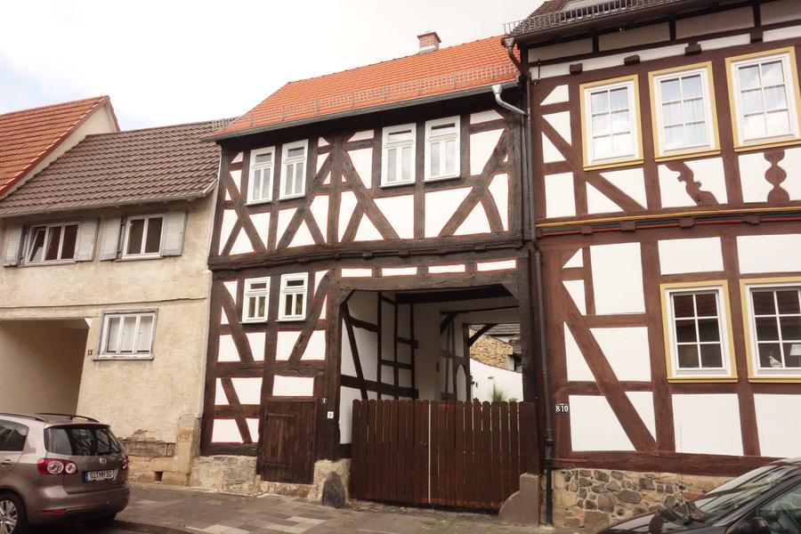 Das traufständige Fachwerkhaus aus dem 18. Jh. liegt prominent in unmittelbarer Nähe zum Torturm, der sog. Wiesecker Poart (=Pforte), die früher die einzige Einfahrt in den Ort Wieseck war. Die Eigentümerin ließ das Wohnhaus aus Familienbesitz grundlegend sanieren, dessen Denkmalbestand durch langjährige Vermietung und viele Umbauten und Veränderungen gefährdet war.
