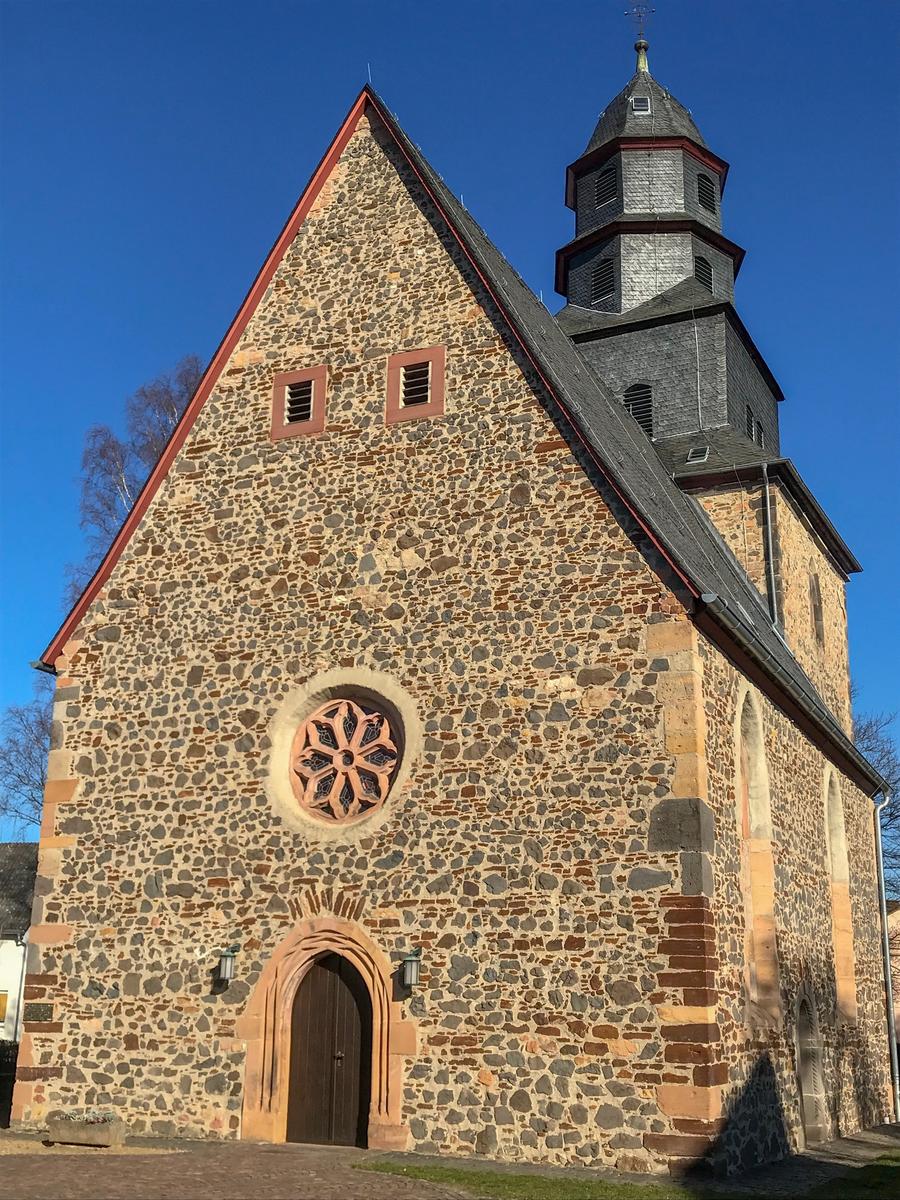 Eine Kirche wird in Wieseck erstmals 778 urkundlich erwähnt, wobei ein Abt Beatus von Honau das Gotteshaus zusammen mit einer Reihe anderer an das Kloster in Honau überträgt. Die heutige Kirche steht wahrscheinlich auf den Fundamenten des Sakralbaus aus dem 8. Jh. Der steinerne Unterbau ihres quadratischen Ostturms wurde gegen Ende des 13. Jh. erbaut, das Chorgewölbe gegen Ende des 15. Jhs. Das sakrale Schmuckstück unweit der Wiesecker Poart ist ein hessisches Kulturdenkmal und ist mit seinem Chorturm, der von einem dreistufigen Haubenhelm bekrönt wird, Ortsbild prägend.