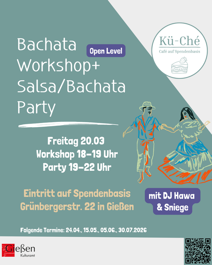 - Ab 18 Uhr geht es los mit unserem open level Bachataworksop. Ganz egeal, ob du schon Tanzerfahrung hast oder deine ersten Schritte machst. Hier können alle was mitnehmen!
