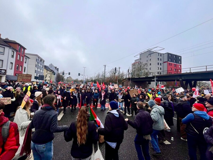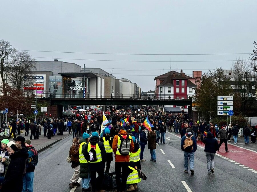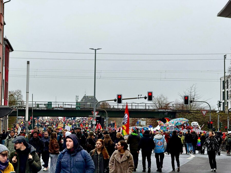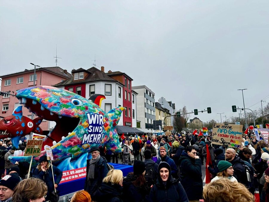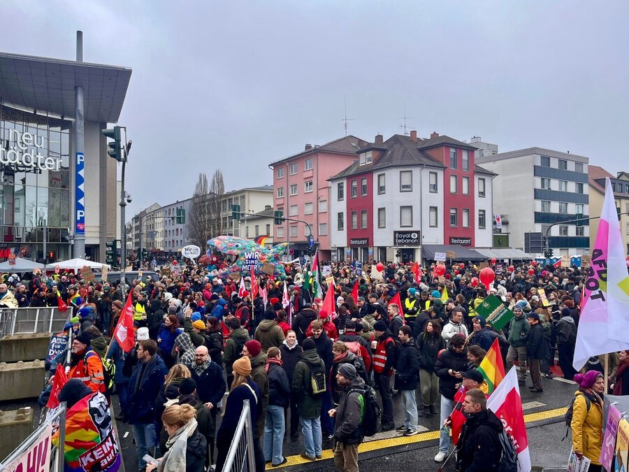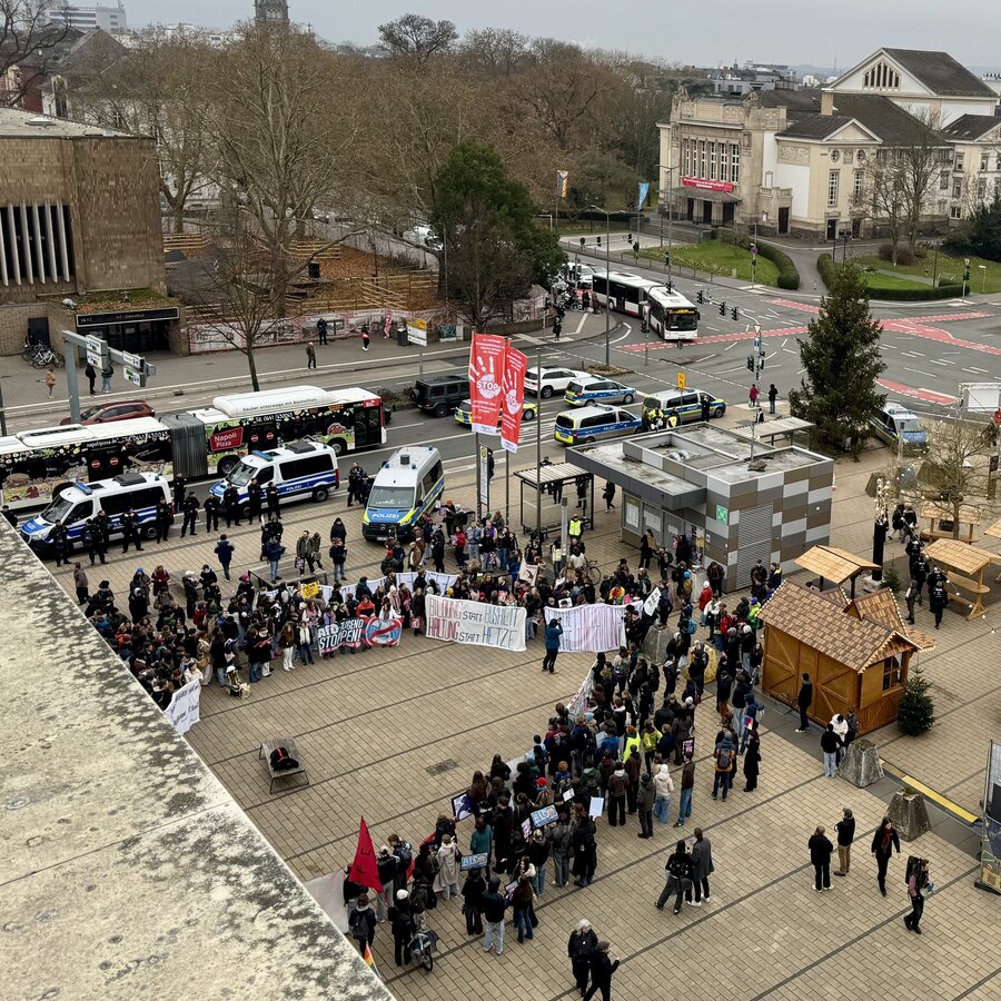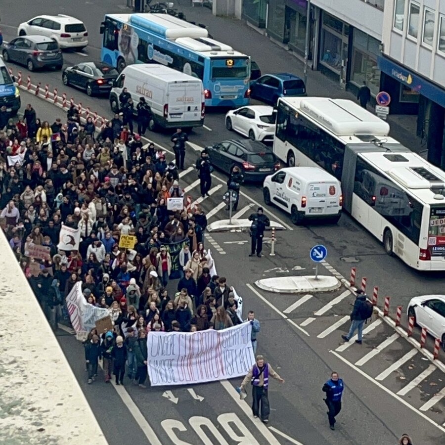 Gegen 12 Uhr ist die erste Demonstration mit einem Sternmarsch der "Schülis gegen rechts" gestartet. Von den verschiedenen Schulen in Gießen trafen sich die Schülerinnen und Schüler auf dem Berliner Platz.